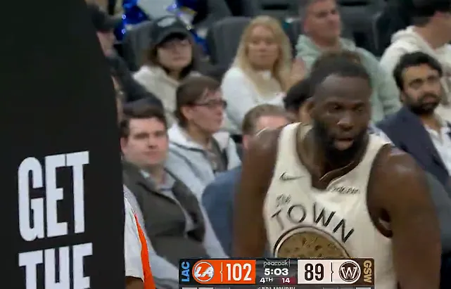 第四节比赛中,格林末节留在场上底角三分不中,目前三分5中1、正负值-14。